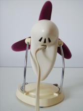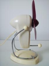Baujahr: ca. 1950? Breite: ca. 16 cm, Tiefe: ca. 11 cm, Höhe: ca. 20,5 cm Flügeldurchmesser: ca. 16 cm Spannung: 220 V, Stufen: 1 Gehäusematerial: Motorgehäuse und Fuß aus cremefarbenem Kunststoff, Ständer verchromtes Metall Bemerkung: Die Ventilatoren der Baureihe RA 2826 besitzen im Gegensatz zu den Ventilatoren der Baureihe RA2827 am Fuß keinen Druckschalter. Das Design entspricht den Ventilatoren der Philips "HA 2728- bzw. HA2726-Reihe" |