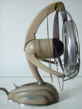 Baujahr: ca. 1955? Breite: ca. 22 cm, Höhe: ca. 29 cm Gewicht: ca. 2,4 kg Spannung: 220 V, Leistung: 20/1100 W, Stufen: 1 Gehäusematerial: Motorgehäuse und Ständer aus beige farbig lackiertem Metall, Schutzgitter verchromt. Bemerkung: Merkmale TVKH Typ 1: Alle TVKH Heizlüfter haben eine Heizspirale. Bisher bekannt sind 3 unterschiedliche Typen des Heizlüfters. Typ 1 und Typ 2 besitzen einen Druckschalter am Fuß und einen Schalter am Kabel. Typ 3 besitzt einem Drehschalter am Fuß und KEINEN Schalter am Kabel. Der Typ 1 hat hinter dem Rotor einen Zugriffsschutz, bei den Typen 2 und 3 fehlt dieser Schutz. Lackierung: Die bisher bekannten Modelle weisen entweder einen beigen, grünen oder weinroten Schrumpflack auf. |