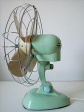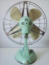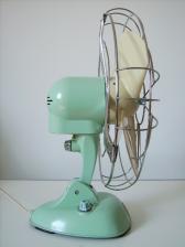 Baujahr: ca. 1960 Breite: ca. 32 cm, Tiefe: ca. 24 cm, Höhe: ca. 40 cm Flügeldurchmesser: ca. 30 cm Spannung: 220 V, Leistung: 40 W, Stufen: 2 Gehäusematerial: Motorgehäuse und mintgrün lackiertes Metall Bemerkung: Es existieren zwei Typen Typ 1 ohne und Typ 2 mit automatischem Schwenkmechanismus |