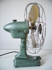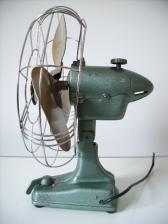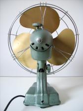 Baujahr: ca. 1950 Breite: ca. 33,5 cm, Tiefe: ca. 31 cm, Höhe: ca. 43 cm Flügeldurchmesser: ca. 30 cm, Gewicht: > 5,0 kg Spannung: 220 V, Leistung: 60 W, Stufen: 4 Gehäusematerial: Motorgehäuse und Ständer aus, mit graublauem Hammerschlaglack lackiertem Metall Bemerkung: Der OW30 ist ein oszillierender Ventilator mit Gelenk. Der Ventilator existiert in zahlreichen Varianten (mindestens 15), die sich anhand folgender Merkmale wie folgt klassifizieren lassen: 1. Schritt: Während des Herstellungszeitraum wurde das Design des Standfußes zweimal geändert. Anhand des Designs der Standfußes erfolgt zunächst eine grobe Einteilung in Typ A oder Typ B Ventilatoren. Die Klassifizierung der Typ A und der Typ B Ventilatoren erfolgt im nächsten Schritt anhand unterschiedlicher Merkmale. Typ B Merkmale: 2. Schritt: Anhand der Schalter für die Geschwindigkeitsregulierung werden die Ventilatoren zunächst in zwei Gruppen aufgeteilt. Dabei erhält die Gruppe mit dem runden Drehschalter zur Geschwindigkeitsregulierung die Kennzahl 1 und der Schalthebel zur Geschwindigkeitsregulierung erhält die Kennzahl 2. 3. Schritt: Anhand der Leistungsangaben auf den Typenschildern werden die Ventilatoren in drei Gruppen aufgeteilt. Die Gruppe mit einer Leistung von 45 W erhält die Kennzahl 1, die Gruppe mit einer Leistung von 50 W, erhält die Kennzahl 2 und die Gruppe mit einer Leistung von 60 W, erhält die Kennzahl 3. Als 4 Schritt erfolgt eine Kennzeichnung hinsichtlich der verwendeten Rotoren. Kennzahl 1 = Rotortyp R4, entspricht einen 3-flügeligem Rotor aus Metall, dessen einzelne Flügel mit der Nabe nicht vernietet sind und die Kennzahl 2 = Rotortyp R5, entspricht einen 3-flügeligem Rotor aus Metall, dessen Flügel jeweils zweifach mit der Nabe vernietet sind. Merkmale Typ B2.3.2: 1.) Standfuß: Typ B; 2.) Schalter für die Geschwindigkeitsregulierung: Kennzahl = 2 = Schalthebel 3.) Leistung: Kennziffer 3 = 60 W; 4.) Rotor: Kennzahl 2 = Rotortyp R5, entspricht einen 3-flügeligem Rotor aus Metall, dessen Flügel nicht mit der Nabe vernietet sind; 5.) Schwenkmechanismus: SM3. Das Bedienelement zum An- bzw. Ausschalten des Schwenkmechanismus ist tellerförmig und befindet sich oben, hinter dem Motorgehäuse; 6.) Lackierung: blaugrüner Lack. Bekannte Hersteller-Nummern.: 911032 Anmerkung: Vom OW30 Typ B2 existieren mindestens 6 Varianten (OW30 Typ B2.1.1 (220V-45W), OW30 Typ B2.1.2 (220V-45W), OW30 Typ B2.2.1 (220V-50W), OW30 Typ B2.3.1 (220V-60W), OW30 Typ B2.3.2 (220V-60W), OW30 Typ B2.3.2 (220V-60W) militär). r}Íz4öE1ÄK |