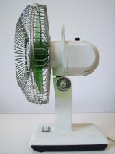 Baujahr: 1979 Breite: ca. 23 cm, Tiefe: ca. 19 cm, Höhe: 33 cm Flügeldurchmesser: 20 cm, Gewicht: 1,2 kg Spannung: 220 V, Leistung: 30 W, Stufen: 2 Gehäusematerial: Motorgehäuse und Ständer aus weißem Kunststoff. Schutzgitter verchromtes Metall Bemerkung: Bei den Ventilatoren der TVO-Baureihe handelt es sich um oszillierende Tisch-Wandventilatoren. Bisher sind von der TVO-Baureihe 6 verschiedene Typen mit mindestens 10 verschiedene Varianten bekannt. TVO 20, TVO 25, TVO 30, TVO 200 Typ 1 und Typ 2, TVO 250 Typ 1 und Typ 2 und TVO 300 Typ 1, Typ 2 und Typ 3. Vermutlich existieren auch die Typen TVO 200 Typ 3 und TVO 250 Typ 3. Während es von Typen TVO 20, 25 und TVO 30 keine weiteren Varianten gibt, existieren bekannt, von den Typen TVO 200, 250 und 300 vermutlich jeweils 3-Varianten (Typ 1, Typ 2 und Typ 3).Man kann davon ausgehen, dass der TVO 20 durch den TVO 200 Typ 1, der TVO 25 durch den TVO 250 Typ 1 und der TVO 30 durch den TVO 300 Typ 1 ersetzt wurde, da sich das Design der Schutzkörbe gleicht. Die Typen 2 und 3 besitzen den gleichen Schutzkorb mit Rauten-Gitter. Sie unterscheiden sich jedoch in der Farbe der Rotorflügel (Typ 2 =grün, Typ 3 = blau). |