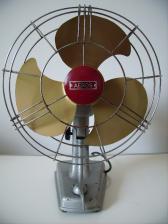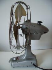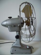 Baujahr: ca. 1960 Breite: ca. 33 cm, Tiefe: 27,7 cm, Höhe: ca. 45 cm Flügeldurchmesser: ca. 30 cm Spannung: 220 V, Leistung: 45 W, Stufen: 4 Gehäusematerial: Motorgehäuse und Ständer silberfarbenem Hammerschlag lackiertes Metall Bemerkung: Merkmale OG30: Der OG30 hat goldfarbig lackierte Rotorblätter; die Geschwindigheitsregulierung erfolgt über einen Hebel; Nennleistung 45 W. Das Modell ist nahezu baugleich mit dem Modell OW30 Typ 5 (45W), des Herstellers Aeros -> Aeros - OW30 Typ 5 (45W). |