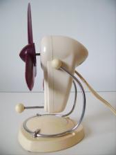 Baujahr: ca. 1950? Breite: ca. 16 cm, Tiefe: ca. 11 cm, Höhe: ca. 21 cm Flügeldurchmesser: ca. 16 cm Spannung: 215 V, Stufen: 1 Gehäusematerial: Motorgehäuse aus cremefarbenem Bakelit; Ständer verchromtes Metall Bemerkung: Im Gegensatz zur HA 2728-Reihe verfügt der Ventilator nur über eine Geschwindigkeitsstufe. Design entspricht dem Radiola Modell RA 2726/10 |