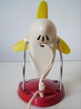 Baujahr: ca. 1955? Breite: ca. 16 cm, Tiefe: ca. 11 cm, Höhe: ca. 21 cm Flügeldurchmesser: ca. 16 cm Spannung: 220 V, Stufen: 2 Gehäusematerial: Motorgehäuse aus cremefarbigem Kunststoff; Ständer roter Kunststoff mit verchromtem Metall Bemerkung: Merkmale HA 2728 Rot-Weiß-Gelb (220V): Farbe Standfuß: Rot; Farbe Motorgehäuse hinten: Weiß; Flügelfarbe: Gelb; Spannung: 220 V; Der Ventilator besitzt außer einem Drehschalter aus Metall mit einer Kugel aus Kunststoff am Ende, einen Druckschalter am Standfuß. |