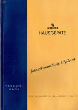 Sprache: Deutsch Jahr: 1954 /1955 Seiten: 121, Größe: 21 x 14,8 x 0,9 cm Bemerkung: Genauer Titel/exact title: Siemens Hausgeräte, Preisliste 1954/55 Siemens-Schuckertwerke Aktiengesellschaft. INHALT: - Erläuterungen - Kleingeräte - Raumheizgeräte - Kochgeräte - Heißwasserbereiter - Staubsauger - Fächer und Lüfter, Händetrockner - Wäscheschleudern, Bügelmaschinen - Kühlschränke - Anschluß- und Verlängerungsschnüre |