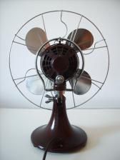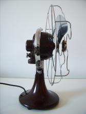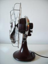 Angebotspreis: 150,00 €, Anfrage senden Bid Price: 150,00 €, Send Request Baujahr: ca. 1940 Breite: ca. 33 cm, Tiefe: ca. 19 cm, Höhe: 43 cm Flügeldurchmesser: ca. 30 cm, Gewicht: ca. 4,1 kg Spannung: 110 bzw. 125 V Gehäusematerial: Motorgehäuse und Ständer aus braun-rötlichem Bakelit. Schutzkorb aus verchromtem Metall Bemerkung: seltener Ventilator, dessen Fußform dem der Modelle No Cat 930, No Cat 955 bzw. No Cat 965 gleicht. Von diesem Ventilator existiert eine Variante mit 110 V und eine Variante mit 125 V Nennspannung. Merkmale Typ 2: Blau hinterlegtes Firmenlogo. Der Firmennamen besteht aus Grossbuchstaben "CALOR". Oberhalb Firmennamens befinden sich zwei silber-farbige Bögen. Unterhalb des Firmennamens befindet sich ein silber-farbiges Kreissegment Zustand: Seltener Bakelit Ventilator. Sehr guter technischer und optischer Zustand. Keinerlei Risse. Condition: rare Bakelite fan. Very good working and optical condition. No cracks. |