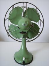 Bemerkung: ETO 25 Grün (0,23A) Der ETO 25 ist ein Ventilator mit Gelenk und automatischer Schwenkvorrichtung. 1.) Schwenkmechanismus: Das Getriebe für den automatischen Schwenkmechanismus befindet sich unter einer Abdeckung hinter dem Motorgehäuse. Bei frühen Modellen (Typ 1) befindet sich der Schalter für den automatischen Schwenkmechanismus seitlich, bei späteren Modellen (Typ 2) auf der Abdeckung. 2.) Stromstärke: Von dem ETO 25 sind Varianten mit unterschiedlichen Stromstärken bekannt (0,23A -> Typ 1-1 bzw. Typ 2-1, 0,3A -> Typ 1-2 bzw. Typ 2-2, 0,32A -> Typ 1-3 bzw. Typ 2-3und 0,4A -> Typ 1-4 bzw. 2-4). 3.) Lackierung: Bei den ersten Modellen dieser Baureihe sind der Ständer, das Motorgehäuse, die Getriebeabdeckung und der Rotor grün, bei den späteren Modellen sind nur der Ständer und das Motorgehäuse hellblau oder orange lackiert. Die Getriebeabdeckung und der Rotor sind bei späteren Modellen cremefarbig lackiert. 4.) Rotor: Die Rotoren der frühesten Modelle erscheinen im Vergleich zu den späteren Modellen spiegelverkehrt. Die Abdeckung der Flügelnabe ist bei frühen Modellen aus Aluminium, bei späteren Modellen aus cremefarbig lackiertem Aluminium. Bisher sind folgende Varianten bekannt: ETO 25 Grün (0,23A), ETO 25 Typ 1-1 Blau (0,23A), ET0 25 Typ 1-2 Blau (0,3A), ETO 25 Typ 1-2 Orange (0,3A), ETO 25 Typ 1-3 Blau (0,32A), ETO 25 Typ 1-3 Orange (0,32A), ETO 25 Typ 1-4 Blau (0,4A), ETO 25 Typ 2-2 Blau (0,3A) Merkmale ETO 25 Grün: 1.) Schwenkmechanismus: Typ 1, d.h. der Schalter für den automatischen Schwenkmechanismus befindet sich seitlich an der hinteren Motorabdeckung.2.) Stromstärke: vom ETO 25 in Grün sind bisher nur Modelle mit einer Stromstärke von 0,23 A bekannt 3.) Lackierung: Ständer, Motorgehäuse und Flügel Grün lackiert. 4. Rotor: 4-flügeliger, grün lackierter Rotor. Der Rotor erscheint im Vergleich zu den späteren Modellen spiegelverkehrt. Die Flügelnabe ist aus Aluminium.