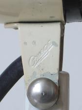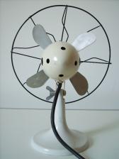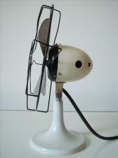 Baujahr: ca. 1956 Breite: ca. 22 cm, Tiefe: ca. 13,5 cm, Höhe: ca. 29 cm Flügeldurchmesser: ca. 19 cm, Gewicht: 1,07 kg Spannung: 220 V, Leistung: 20 W, Stufen: 1 Gehäusematerial: Motorgehäuse Metall, Ständer aus Porzellan Bemerkung: Merkmale Omega Typ 1034: 1. Rotor: Flügel aus unlackiertem Aluminium. Der Flügeldurchmesser beträgt 18,8 cm. 2. Schutzkorb: Der Schutzkorb besteht aus einem äußeren Ring und aus 4 Streben, deren Mitten sich an einem Punkt kreuzen, so dass optisch der Eindruck entsteht als würde der der Schutzkorb 8 Streben aufweisen. 4 Enden von 2 Streben enden am Kreisring, während die 4 Enden der verbleibenden 2 Streben, nicht am Kreisring, sondern darüber hinaus, als Schutzkorbhalterungen in der vorderen Motorabdeckung enden. Alle Kreuzungspunkte und Enden der Streben sind entweder miteinander oder mit dem Kreisring oder mit der vorderen Motorabdeckung verschweißt. 3. Motor: Die vordere Motorabdeckung weist 6, die hintere Motorabdeckung 4 Lüftungslöcher auf. 4. Lackierung: Die vordere Motorabdeckung, sowie der Schutzkorb sind schwarz lackiert. Die hintere Motorabdeckung ist cremefarbig lackiert. 5. Ständer: Der Ständer ist aus Porzellan. 6. Sonstiges: Der Omega Typ 1034 ist ein Ventilator dessen Entstehung sich bis ca. 1937 zurückverfolgen lässt. In diesem Jahr, ist in der Preisliste Omega elektr. Apparate 1937-1938 des Herstellers H. A. Köhlers Söhne Metallwarenfabrik Altenburg, unter der Nr. 34, ein Ventilator beschrieben und abgebildet, der sehr große Ähnlichkeit mit dem Omega Typ 1034 hat. Nach der Verstaatlichung der Fa. H. A. Köhlers Söhne Metallwarenfabrik Altenburg im Jahr 1950, zum Volkseigenen Betrieb VEB Elektrowärme Altenburg, wurde der Ventilator nahezu unverändert weiterproduziert. Die ersten Ventilatoren dieser Serie besitzen ein Typenschild an der hinteren Motorabdeckung, entweder mit dem Warenverbandszeichen IKA und der Leistungsangabe von 20 W oder dem Markenlogo Omega und der Leistungsangabe 30 W. Auf beiden Typenschildern sucht man eine Typenbezeichnung vergeblich. Die Typenbezeichnung Typ 34 wurde alleine aufgrund der historischen Belege vergeben. Im Gegensatz zu dem Omega Nr 34 des Herstellers H. A. Köhlers Söhne Metallwarenfabrik Altenburg und der Ventilatoren Omega Typ 34 und IKA Typ 34, hat der Omega Typ 1034 kein Typenschild an der hinteren Motorverkleidung. Stattdessen befindet sich eingestanzt, oberhalb des Gelenks zur Neigungseinstellung, auf einer Seite, das Markenlogo Omega auf der anderen Seite, Informationen wie die Typenbezeichnung 1034, die Nennspannung (220V) und die Leistungsangabe. (20W). Der Omega Typ 1034 ist baugleich mit dem IKA Typ 1034. Das Markenlogo Omega, wurde bei diesem Ventilator durch das Warenverbandszeichen IKA und das Herstellerkürzel EWA (Elektrowärme Altenburg) getauscht. Außerdem findet man auch bei diesem Ventilator keine Typenangabe, sondern lediglich Informationen zur Spannung und Leistung. |