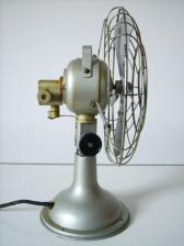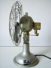 Baujahr: ca. 1940 Breite: ca. 27,5 cm, Tiefe: ca. 18 cm, Höhe: ca. 40 cm Flügeldurchmesser: ca. 25 cm, Gewicht: ca. 3,5 kg Spannung: 220 V, Leistung: 40 W, Stufen: 3 Gehäusematerial: Motorgehäuse und Ständer aus silberfarben lackiertem Metall Bemerkung: L 40er 250: Leider liegen kaum Informationen zu diesem Ventilator vor. Es handelt sich dabei um einen Ventilator mit Gelenk zur Neigungseinstellung, der sowohl als Tisch- als auch als Wandventilator verwendet werden kann. Es gibt Modelle mit und ohne automatischer Schwenkvorrichtung. Der Rotordurchmesser beträgt 250 mm. Die Taxonomie bedient sich folgender Klassifizierungen: 1. Motorbauweise: Man unterscheidet Motoren mit gut sichtbaren Stromabnehmern (Typ A) und Motoren ohne sichtbare Stromabnehmer am Motorgehäuse (Typ B). 2. Leistung (P=W): Alle Motoren vom Typ A haben eine Leistung von 35 W. Motoren vom Typ B haben entweder 38 W (KZ.: B1) oder 40 W (KZ.: B2) 3. Schutzkorbdesign: Bisher bekannt sind 2 unterschiedliche Schutzkorbdesigns. S1 bzw. S2 4. Lackierung: L1 = Petrol, L2 = Silber 5. automatischer Schwenkmechanismus: Es kann davon ausgegangen werden, dass es von jedem Typ ohne Schenkmechanismus auch einen mit Schwenkmechanismus gibt. Ist dies der Fall so wird ein o (oszillieren) nachgestellt. Merkmale Typ B2 S2 L2 - o: 1. Motorbauweise: Motor ohne sichtbare Stromabnehmern -> Typ B 2. Leistung: P=40 W -> Typ B2 3. Schutzkorbdesign: S2 Schutzkorb 4. Lackierung: silberfarbige Lackierung L2 5. automatische Schwenkeinrichtung vorhanden: Ja -> - o Anmerkung: Vom Typ B2 S2 L2 ist auch Modelle mit automatischem Schwenkmechanismus bekannt. -> Typ B2 S2 L2 - o Bekannte Hersteller-Nr.: 883533, 883497 |