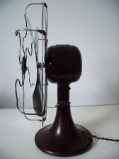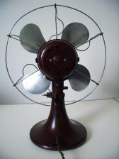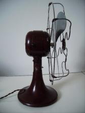 Baujahr: ca. 1932 Breite: ca. 33 cm, Tiefe: ca. 19 cm, Höhe: ca. 41 cm Flügeldurchmesser: ca. 30 cm, Gewicht: ca. 3,3 kg Spannung: 110/105/115V, Leistung: 55 W, Stufen: 1 Gehäusematerial: Motorgehäuse und Ständer aus rötlichbraunem Bakelit. Schutzkorb verchromtes Metall Bemerkung: Der Ventilator No Cat 965 ist nahezu identisch mit dem Ventilator No Cat 960. Unterschiede: Der No Cat 965 weist an der hinteren Motorabdeckung 8 kreisrunde Lüftungsöffnungen auf. Der No Cat 960 weist an der hinteren Motorabdeckung insgesamt 16 kreisrunde Lüftungsöffnungen auf. Beide Ventilatoren haben zwei, von außen gut sichtbare, Stromabnehmer und sind vermutlich 1932 hergestellt worden. Aufgrund Ihres Alters, der Seltenheit und des wunderschönen Bakelits sind alle No Cat Ventilatoren (950, 955, 960 und 965) gesuchte Sammelstücke. |