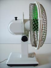 Baujahr: > 1979 Breite: ca. 23 cm, Tiefe: ca. 19 cm, Höhe: 33 cm Flügeldurchmesser: 20 cm, Gewicht: 1,35 kg Spannung: 220 V, Leistung: 30 W, Stufen: 2 Gehäusematerial: Motorgehäuse und Ständer aus weißem Kunststoff. Schutzgitter verchromtes Metall Bemerkung: Bei den Ventilatoren der TVO-Baureihe handelt es sich um oszillierende Tisch-Wandventilatoren. Bisher sind von der TVO-Baureihe 6 verschiedene Typen mit mindestens 10 verschiedene Varianten bekannt. TVO 20, TVO 25, TVO 30, TVO 200 Typ 1 und Typ 2, TVO 250 Typ 1 und Typ 2 und TVO 300 Typ 1, Typ 2 und Typ 3. Vermutlich existieren auch die Typen TVO 200 Typ 3 und TVO 250 Typ 3. Während es von Typen TVO 20, 25 und TVO 30 keine weiteren Varianten gibt, existieren bekannt, von den Typen TVO 200, 250 und 300 vermutlich jeweils 3-Varianten (Typ 1, Typ 2 und Typ 3).Man kann davon ausgehen, dass der TVO 20 durch den TVO 200 Typ 1, der TVO 25 durch den TVO 250 Typ 1 und der TVO 30 durch den TVO 300 Typ 1 ersetzt wurde, da sich das Design der Schutzkörbe gleicht. Die Typen 2 und 3 besitzen den gleichen Schutzkorb mit Rauten-Gitter. Sie unterscheiden sich jedoch in der Farbe der Rotorflügel (Typ 2 =grün, Typ 3 = blau). |