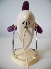 Baujahr: ca. 1950? Breite: ca. 16 cm, Tiefe: ca. 11 cm, Höhe: ca. 21 cm Flügeldurchmesser: ca. 16 cm Spannung: 215 V, Stufen: 1 Gehäusematerial: Motorgehäuse aus cremefarbenem Bakelit; Ständer verchromtes Metall Bemerkung: Im Gegensatz zur HA 2728-Reihe verfügt der Ventilator nur über eine Geschwindigkeitsstufe. Design entspricht dem Radiola Modell RA 2726/10 |