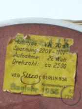Angebotspreis: 30,00 €, Anfrage senden Bid Price: 30,00 €, Send Request Baujahr: ca. 1955 Breite: ca. 22,5 cm, Tiefe: ca. 16 cm, Höhe: ca. 28 cm Flügeldurchmesser: ca. 20 cm, Gewicht: ca. 2.2 kg Spannung: 220/110 V, Leistung: 22 W, Stufen: 1 Gehäusematerial: Motorgehäuse und Ständer aus Porzellan Zustand: technisch in einem guten Zustand. Der Käfig wurde an mehren Stellen geschweißt. Das Kabel sollte evtl. ausgetauscht werden Condition: Good working condition. The cage was welded and the cable should be changes The cabe should be changed |