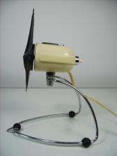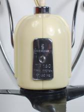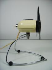 Angebotspreis: 15,00 €, Anfrage senden Bid Price: 15,00 €, Send Request Baujahr: 1955/1956 Breite: ca. 16 cm, Tiefe: ca. 14 cm, Höhe: ca. 22 cm Flügeldurchmesser: ca. 16 cm, Gewicht: ca. 0,46 kg Spannung: 220 V, Leistung: 10 W, Stufen: 1 Gehäusematerial: Motorgehäuse aus cremefarbenem Kunststoff. Ständer aus verchromtem Metall Bemerkung: Dieser Ventilator existiert verschiedenen Variationen mit blauen, grünen oder schwarzen Flügeln und Kugelfüßen aus Kunststoff in der gleichen Farbe wie die Flügel. Neben diesen Varianten, existiert noch eine Variante mit roten Flügeln und roten Kugelfüßen. Es kann allerdings davon ausgegangen werden, dass es sich bei dem Rotor und den Kugelfuß, um die Elemente eines TF 161 handelt. Zustand: funktionsfähiger Ventilator. Motorgehäuse ohne Risse. Der Stecker sollte ausgetauscht werden, da er bereits geklebt wurde Remark: This electric fan exist in 4 variations, with black, blue, green or red blades. The type TF160 is similar to the type TF161 but older. The fan can be fixed on the table or on the wall. |