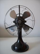 Angebotspreis: 360,00 €, Anfrage senden Bid Price: 360,00 €, Send Request Baujahr: ca. 1920 Höhe: ca. 42 cm Flügeldurchmesser: ca. 30 cm Spannung: 110 V, Stufen: 2 Gehäusematerial: Motorgehäuse und Ständer schwarz lackiertes Metall Zustand: sehr seltener Ventilator. Bis auf das Kabel und den Stecker ist der Ventilator oiginal. Der Ventilator funktioniert. Condition: Very rare table fan in a working condition. Besides the plug in and the cable is the fan is the fan original. |