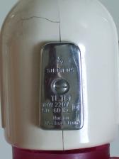 Angebotspreis: 12,00 €, Anfrage senden Bid Price: 12,00 €, Send Request Baujahr: 1956? Breite: ca. 16 cm, Tiefe: ca. 14 cm, Höhe: ca. 22 cm Flügeldurchmesser: ca. 16 cm, Gewicht: ca. 0,46 kg Spannung: 220 V, Leistung: 10 W, Stufen: 1 Gehäusematerial: Cremefarbener Kunststoff, Ständer aus verchromtem Metall Bemerkung: Mir sind von der "TF 161-Baureihe" bisher 10 verschiedene Variationen bekannt. Neben der Farbe der Flügel (Blau, Grün, Dunkelgrün, Rot, Türkis) unterscheiden sich diese Varianten durch das Typenschild. Es gibt das Typenschild mit der Zusatzinformation "Nur für Wechselstrom" (Typ 2) und das Typenschild ohne diesen Zusatz (Typ 1). Zustand: Sehr guter technischer Zustand. Das Motorgehäuse hat einen Riss Remark: Until now, I identify 10 different variations of this fan, with black, blue, green, dark green, red and turquoise blades. Beside the different colours, existing two different nameplates. Typ 2 has on its nameplate the extra information Nur für Wechselstrom . You will not find this information on the nameplate of type 2. The fan can be fixed on the table or on the wall. Condition: Top working condition. The motorcover has one crack. |
